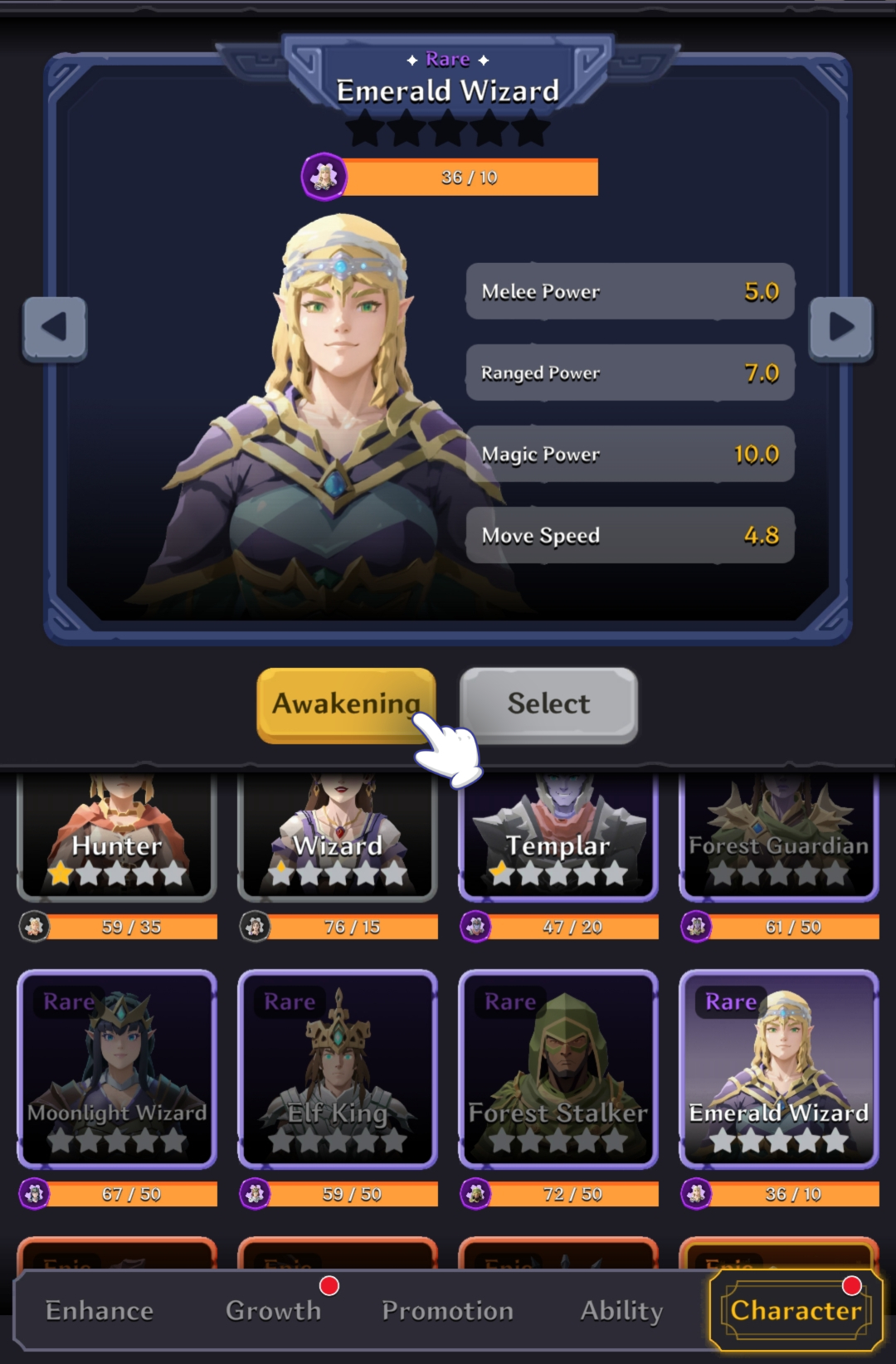 You can awaken characters using character shards.