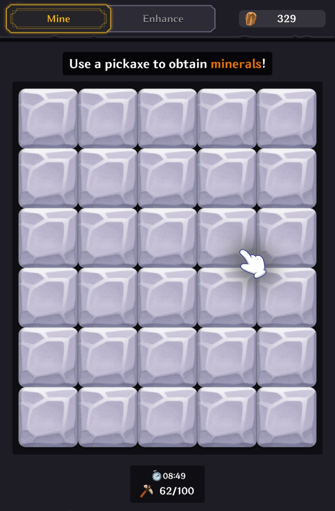 Pressing [Rock] consumes a pickaxe to open one mine slot.