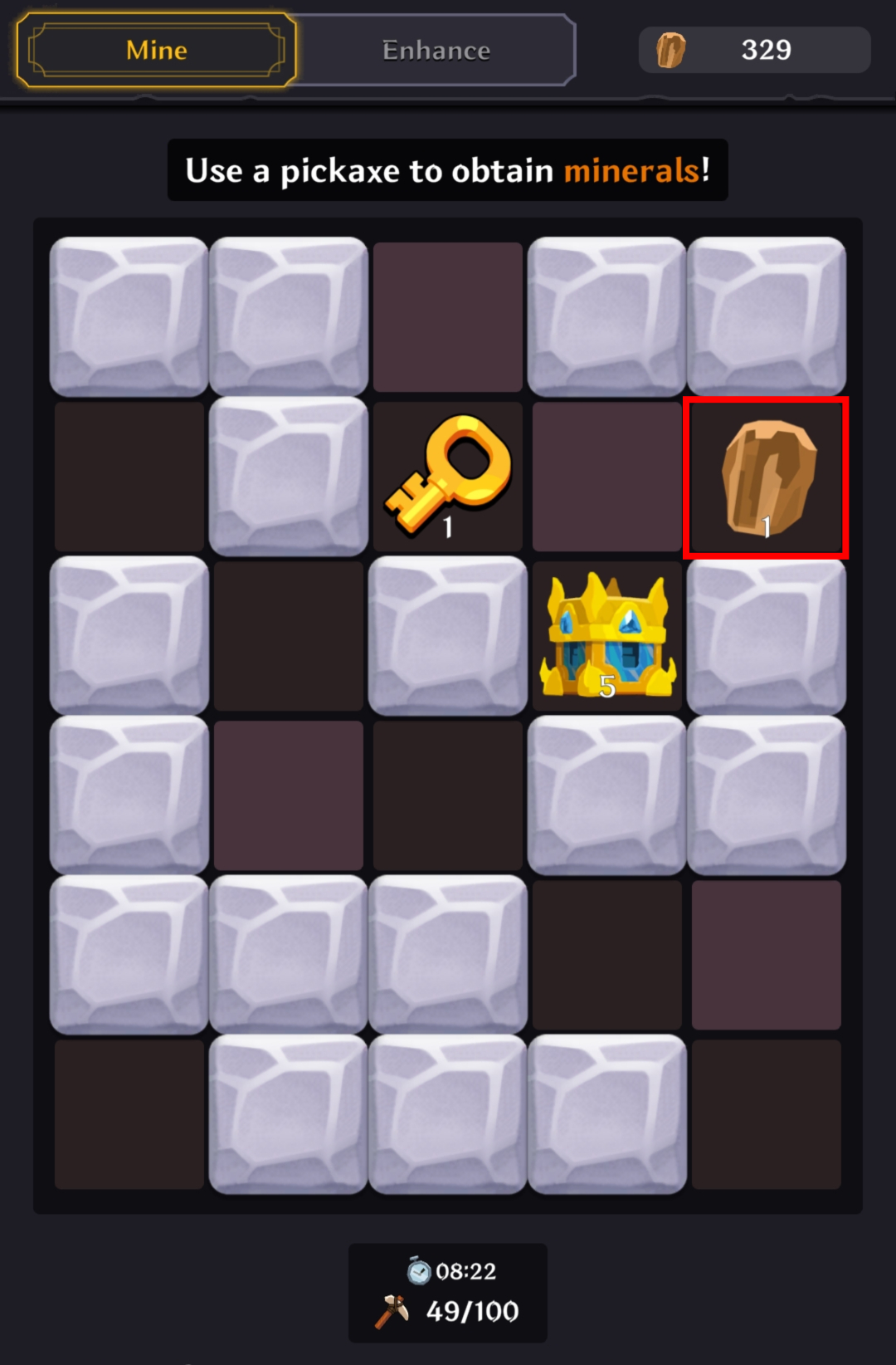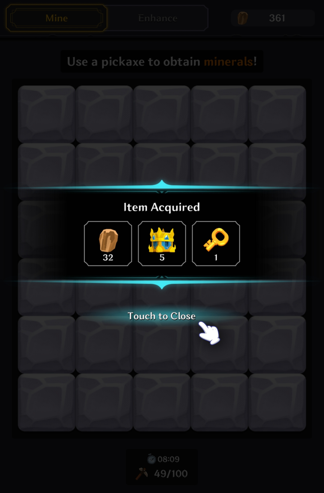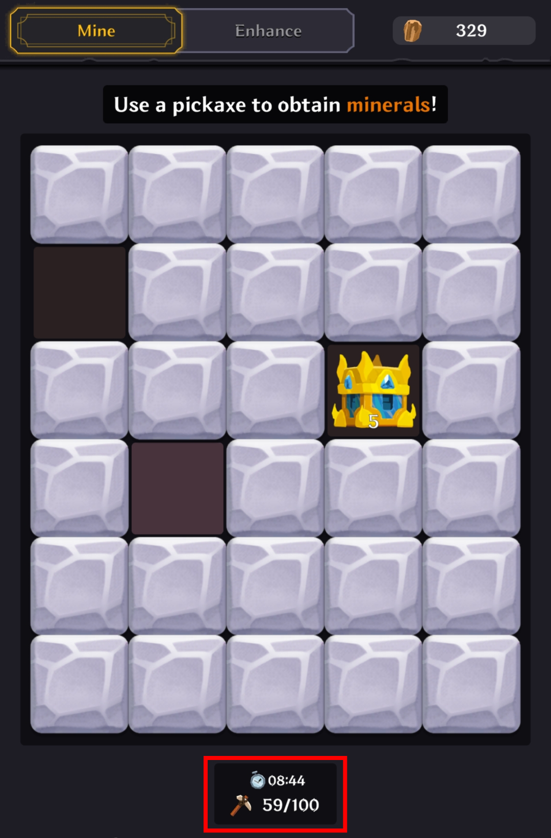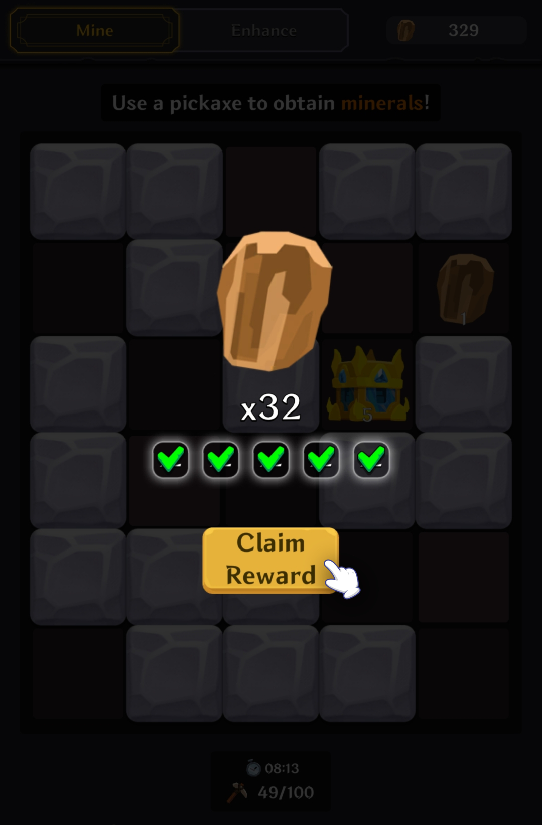 Pressing the [Claim Reward] button allows you to obtain rewards and minerals found in the mine.