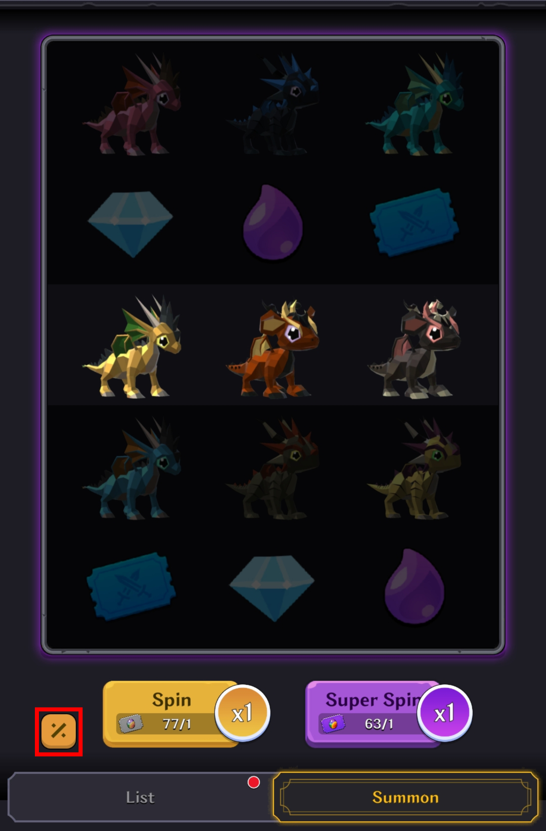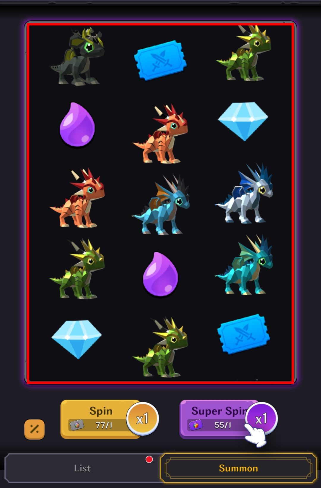 The Super Spin button activates 3 lines at once, with a 10% chance of activating 5 lines.