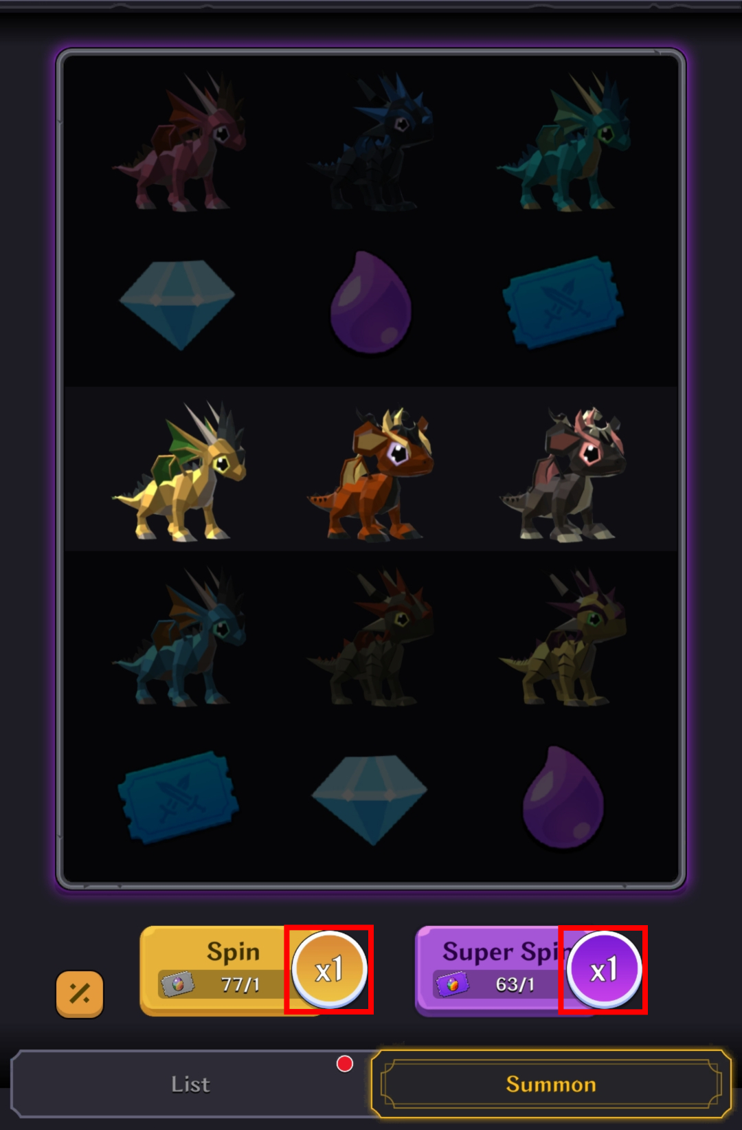 Using the ×1, ×5, ×10 buttons next to the Spin and Super Spin buttons allows you to receive rewards at 1x, 5x, or 10x multipliers respectively.